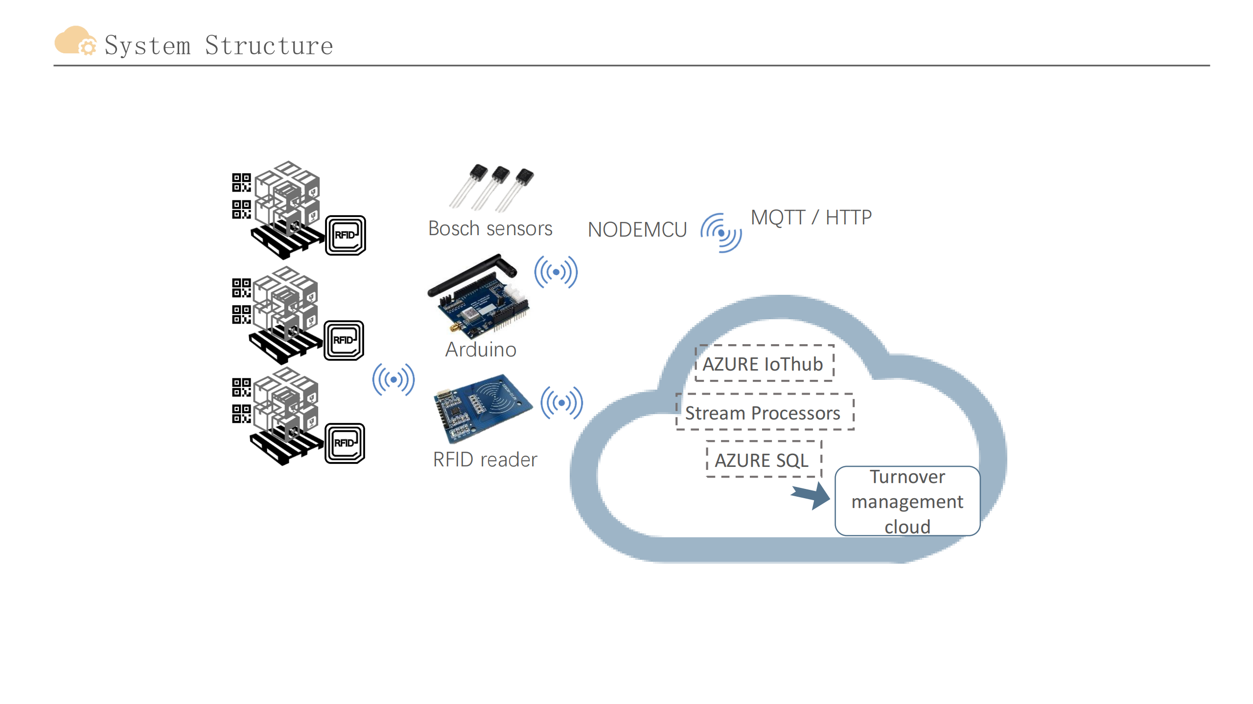 In order to reuse and recycle the parcels in Bosch supply chain with low cost and high efficiency, we develop a IoT solution, a cloud platform using MVC design pattern deployed in AZURE. Multi-device adaptability, perfect for running in computers with different dpi, in different sizes of mobile devices such as pads or mobile phones. This solution is mainly developed in 3 days in the HACHATHON, so there are some places where the code is not standardized and organized well enough.